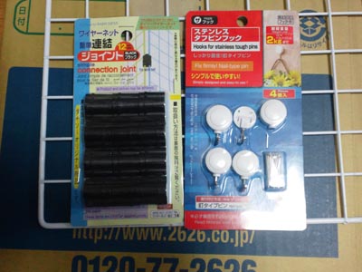 ・ワイヤーネットを連結するヤツ(12個入り105円)→ 6個使用。