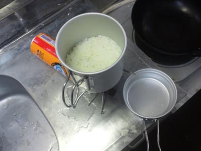 家の中で予行演習、お米を炊いてみました。