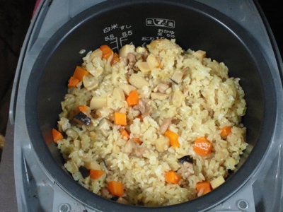 そして最後に煮込んだ具を入れて、炊込みご飯モードでスイッチオン。